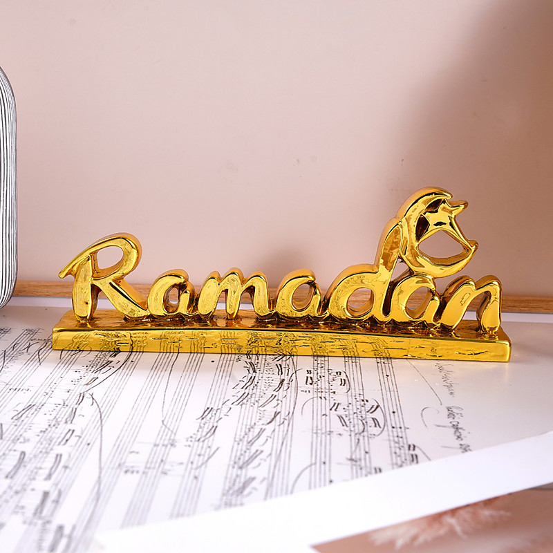 Ramadan Eid 1PC Muslim Ramadan Festival Celebration Resin Material Ramadan Letter Decorative Ornament Ideal for Eid al-Fitr Gift Giving and Ramadan Kareem Home Party and Meeting Decorations