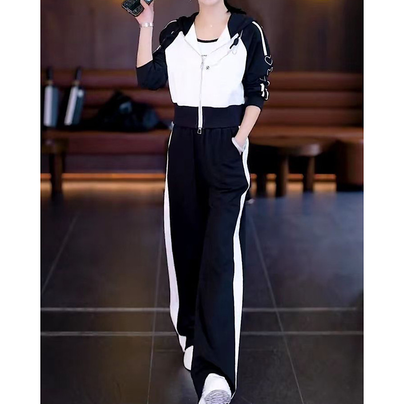 Women's Zip Up Sweatshirt Wide Leg Pants 2 Piece Tracksuit Drawstring Color Block Clothing Suit Fall Black White Hiking Vocation Running Long Sleeve Sport Activewear Micro-elastic Regular Fit