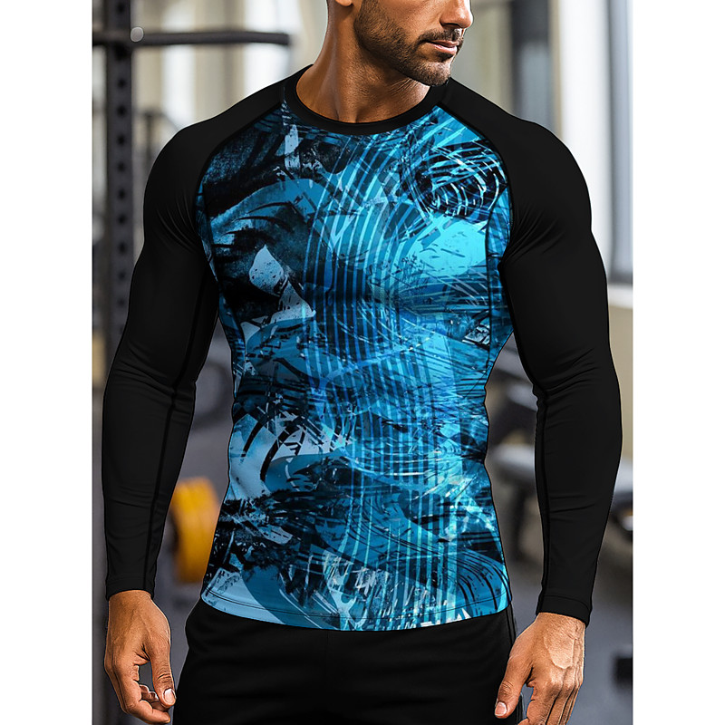 Men's Running T-Shirt Athletic Shirt Gym Shirt Fitness Shirt Workout Shirt Long Sleeve Tee Tshirt Abstract UPF 50 UV Resistant Soft Sweat wicking Mountain Bike / MTB Gym Workout Mountain Bike MTB