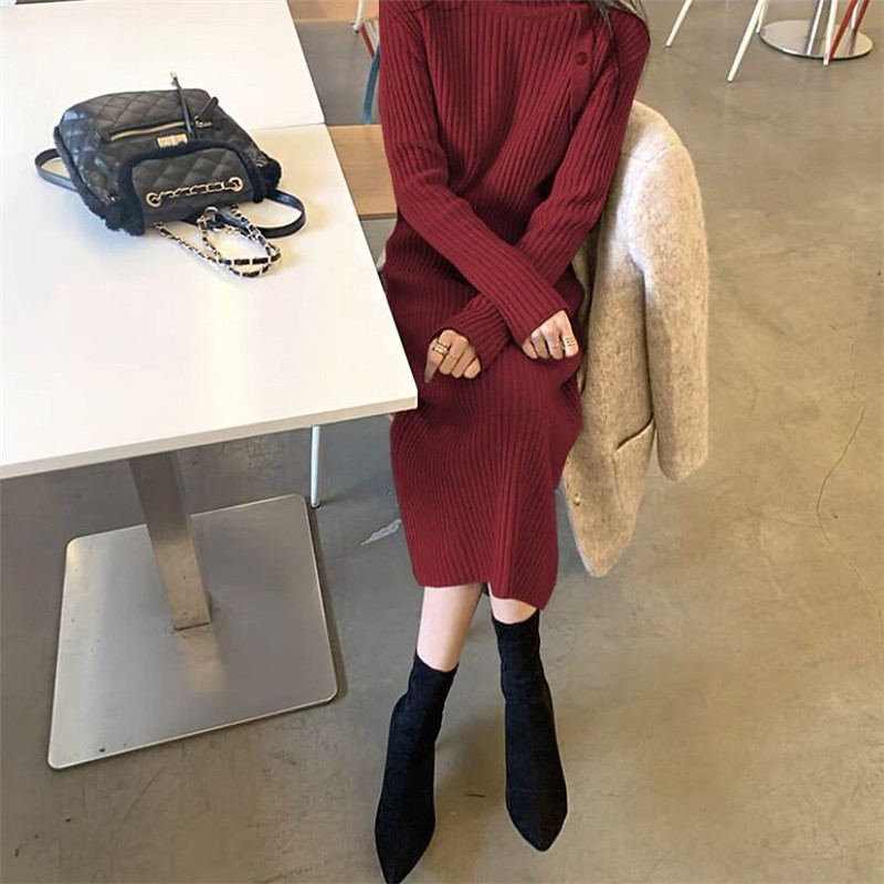 Women's Midi Dress A Line Dress Casual Daily Regular Fit Plain Long Sleeve V Neck Black Red Green Spring Fall Winter