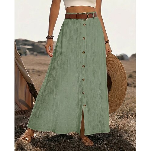 Per donna Gonna da vacanza Moda Casual Estate Maxi Misura del girovita medio Gonne Tinta unita Inelastico Quotidiano Vacanza Nero Bianco Blu marino Arancione Estate Poliestere