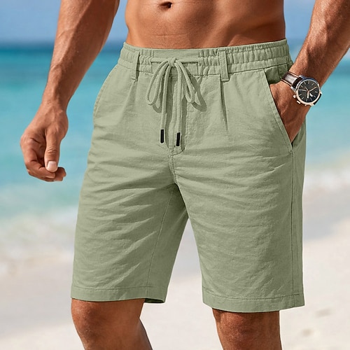 Per uomo Shorts Shorts di Lino Pantaloncini Estivi Shorts da Spiaggia Coulisse Tasca Elastico in vita Tinta unita Comodità Traspirante Corto Casuale Quotidiano Spiaggia Vacanza Moda Nero Bianco