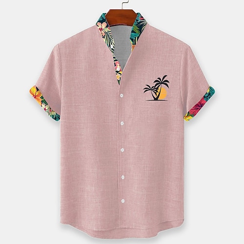 Per uomo Palma di Cocco Camicia casual Camicia hawaiana estiva Camicia Aloha Manica Corta Hawaiano Resort Casual Casuale Estate Primavera Collo ripiegato Cardigan con Bottoni Rosa Blu Verde Grigio
