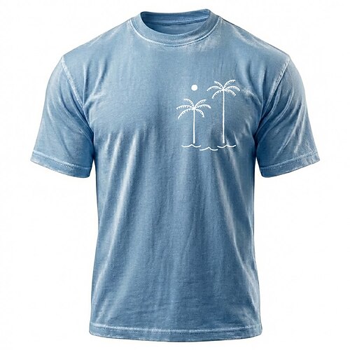 Per uomo Hawaii Palma di Cocco Maglietta Maglietta per lavaggio minerali Manica Corta maglietta Lavaggio acido Girocollo Camicia Vacanza Vintage Retrò Casuale Spiaggia Viaggio Blu Viola Grigio Estate