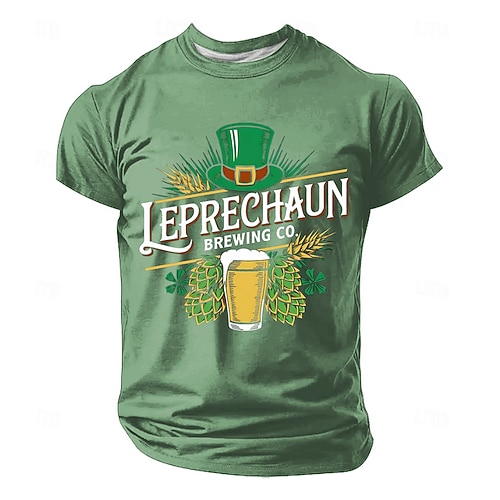 St. Patrick Herren Kleeblatt Glücklicher Ire T Shirt Kurzarm T-Shirt 3D-Druck Rundhalsausschnitt Hemd Designer Lässig Club Party Ferien Grün 1# Schwarz Rote Sommer Frühling Bekleidung S M L XL XXL