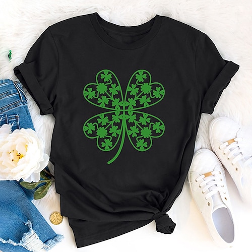 Giorno di San Patrizio Festa di San Patrizio Per donna Maglietta Trifoglio Moda Manica Corta Girocollo Top Regolari Casuale Giorno di San Patrizio Stampato Nero Giallo Rosa Rosso Viola Primavera