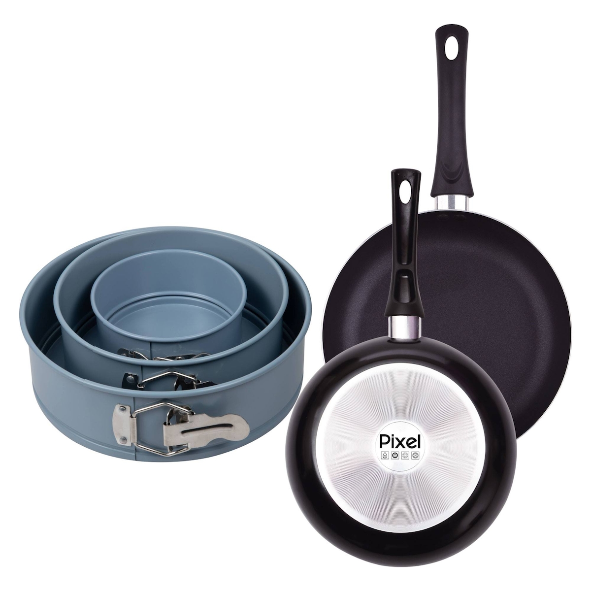 Chef sauce PIXEL - Set mit 2 antihaftbeschichteten Bratpfannen aus gepresstem Aluminium (Ø 20/Ø 24cm) und 3 runden Backformen (Ø 12/Ø 18/Ø 22cm)