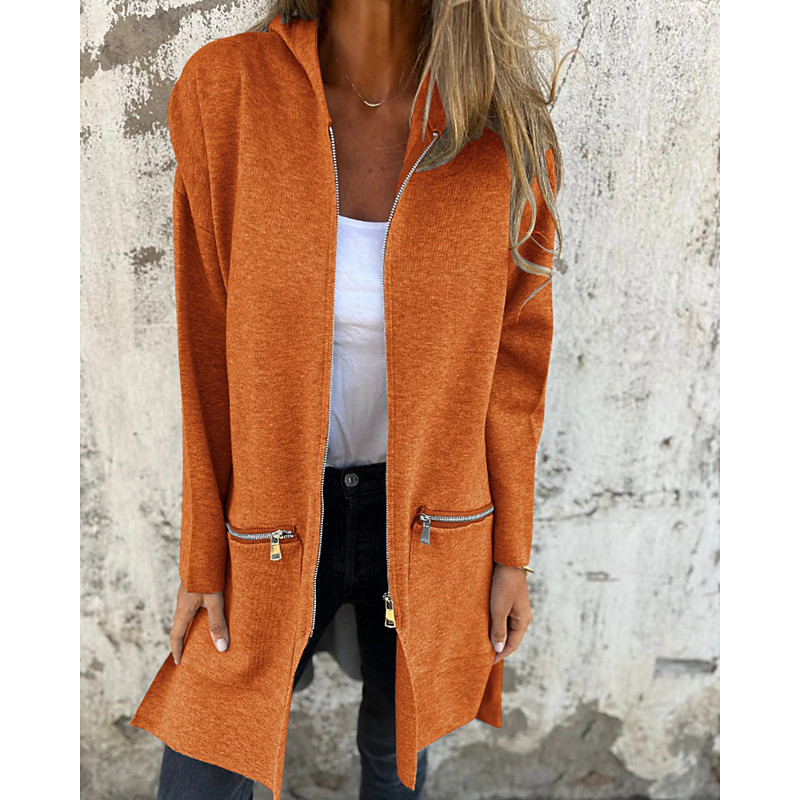 Women's Winter Coat Hoodie Jacket Warm Comfortable Zipper Pocket Casual Plain Outdoor Vacation Home Daily Wear Long Hooded Regular Fit Long Sleeve Outerwear Black Red Camel Fall Winter