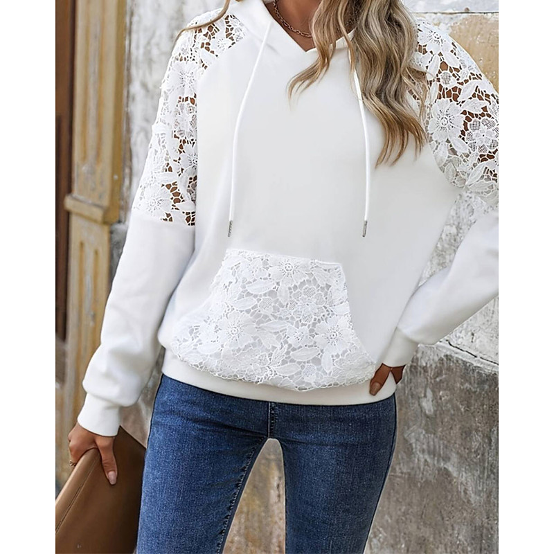 Women's Pullover Hoodie Sweatshirt Floral Plain Elegant Warm Fashion Long Sleeve Hooded Regular Tops Home Work Street Drawstring Patchwork Pocket White Fall Winter