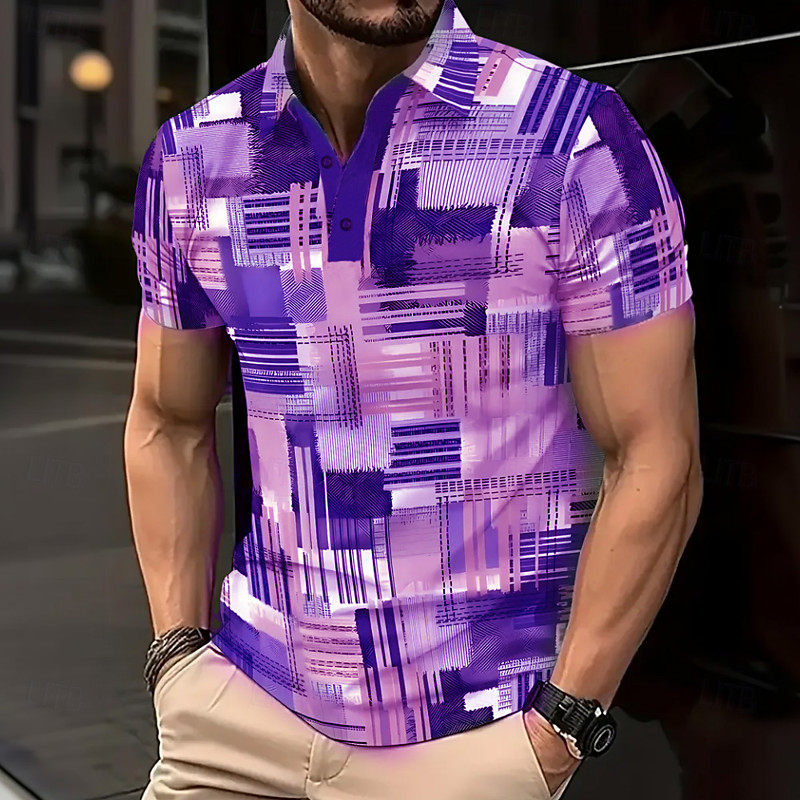 Herren Geometrisch Linie Polo Kurzarm Polo-Shirts Revers Lässig Athleisure 3D-Druck Knöpfe Sommer Blau Purpur Grün