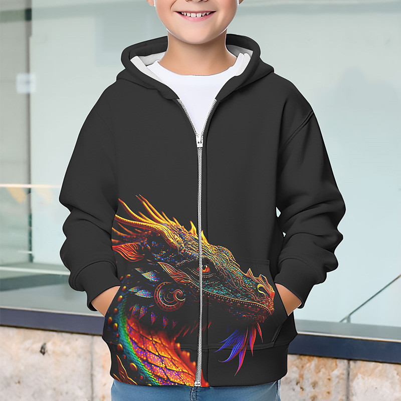 Boys 3D Animal Dinosaur Hoodie Coat Outerwear Long Sleeve 3D Print Fall Winter Fashion Streetwear Cool Kids 3-12 Years Outdoor Casual Daily Regular Fit