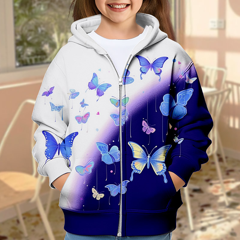 Girls' 3D Butterfly Hoodie Coat Outerwear Long Sleeve 3D Print Fall Winter Active Fashion Cute Kids 3-12 Years Outdoor Casual Daily Regular Fit