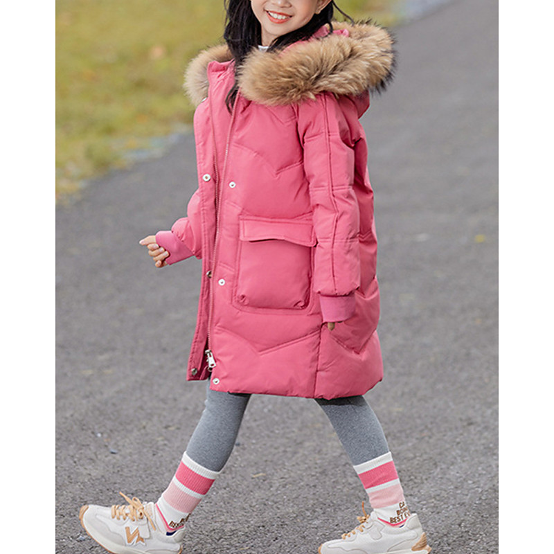 Kids Girls' Down Jacket Puffer Jacket Letter Sports Pocket Keep Warm Windproof Outdoor Coat Outerwear 5 years Winter Black Pink