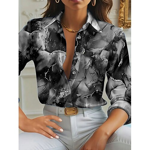 Per donna Camicia Camicia da lavoro Geometrico Marmo Elegante Moderno Casual Manica Lunga Colletto a Camicia Top Regolari Lavoro Abbigliamento da sera Quotidiano Glitter Blu Viola Verde Grigio