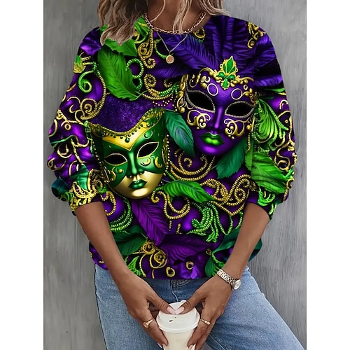 Per donna Felpa Pullover Grafico Classico Casual Manica Lunga Girocollo Top Regolari Abbigliamento da sera Abiti da festa Stampato Marrone scuro Nero Verde Primavera Autunno