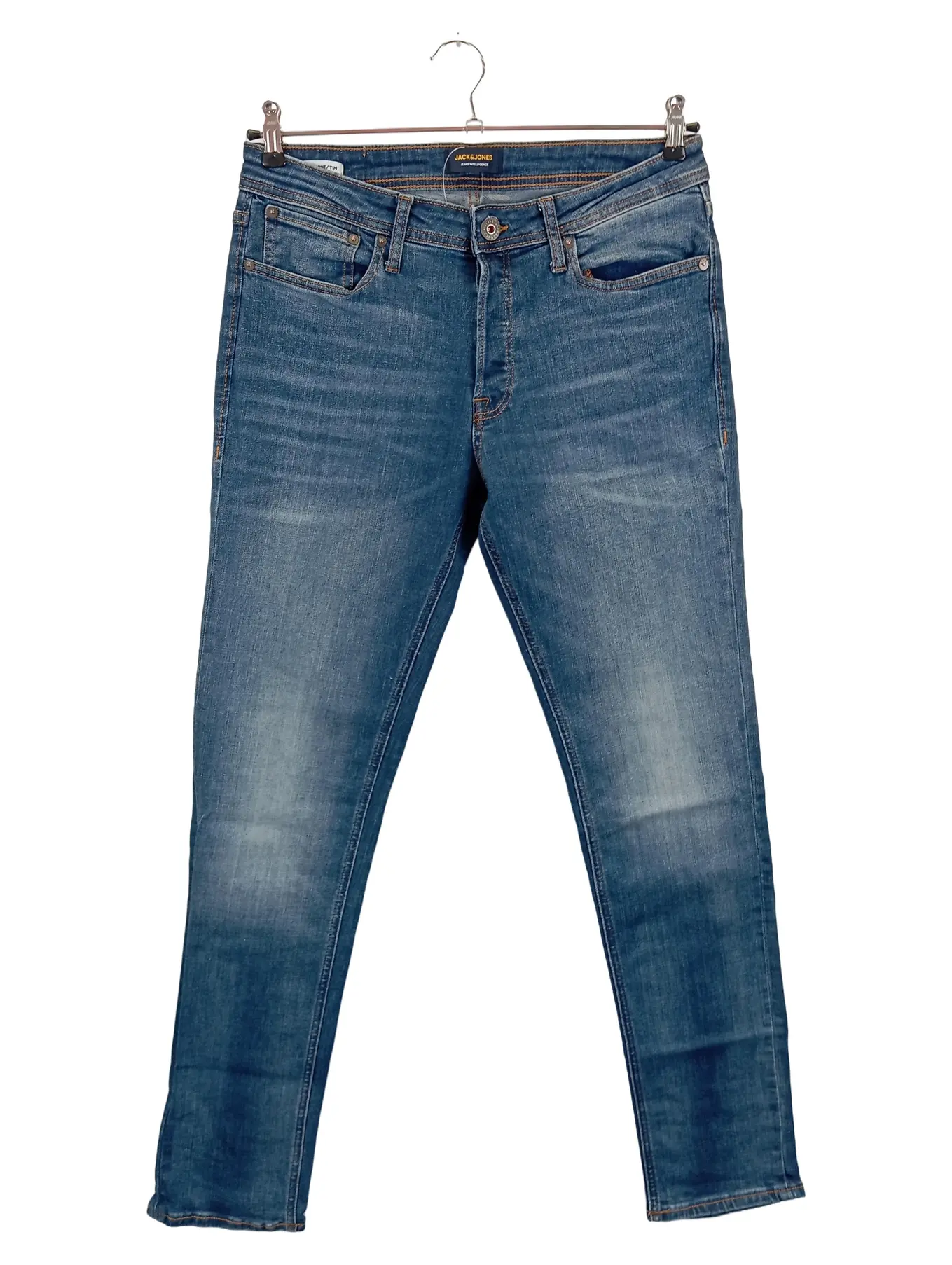 Jack & Jones Slim-fit-Jeans "JJITIM mit Waschung und praktischen Taschen" Abriebeffekte, modisch, slim fit, Denim dunkelblau, used 29, Länge 30