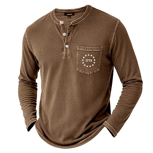 Herren Henley Hemd Hemd aus 100 % Baumwolle in Säurewaschung Langarm Henley Frühling Herbst Ganzjahres Vintage Retro Vintage Lässig Vintage-Stil Gewaschen Lässig Blau Braun Grau Top T-Shirt für Herren