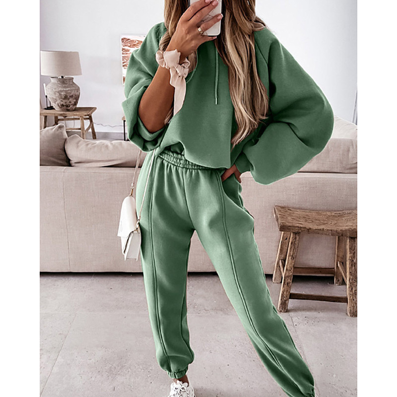 Women's Elegant Warm Fashion Two Piece Sets Tracksuit Pants Sets Long Sleeve Bishop Sleeve Crew Neck Letter Print Outdoor Vacation Daily Black Pink Dark Pink Spring Regular Fit