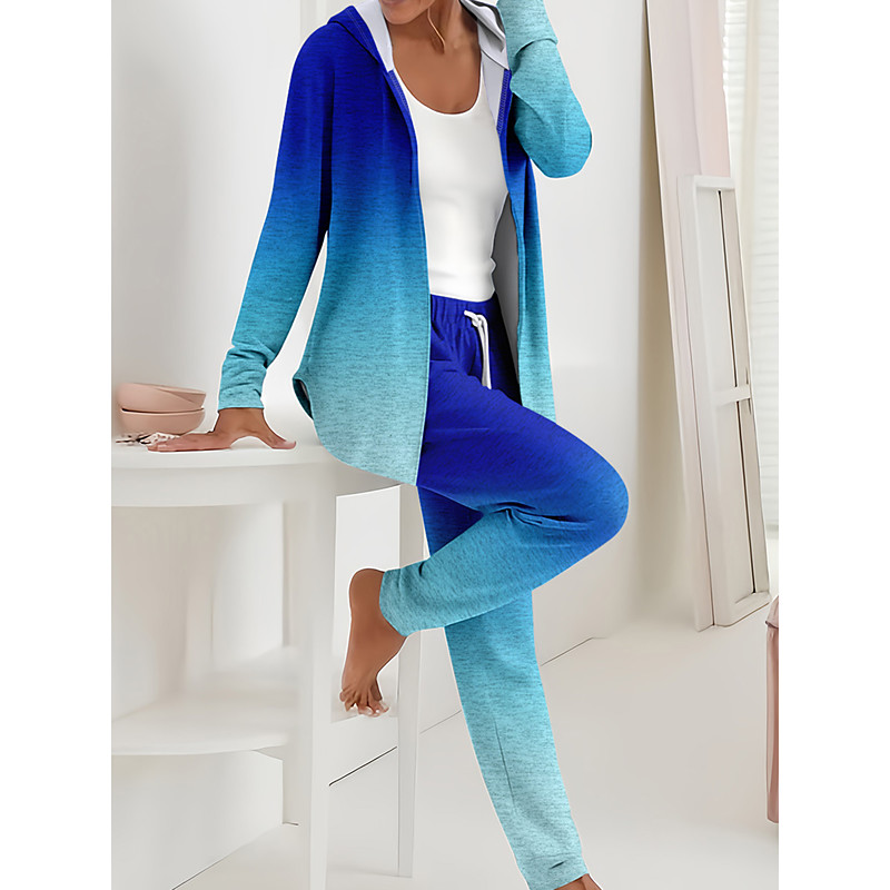 Women's 2 Pieces Hoodie Tracksuits Pants Sets Long Sleeve Active Daily Hooded Floral Graphic Gradient Drawstring Print Outdoor Casual Blue Orange Green Spring Regular Fit