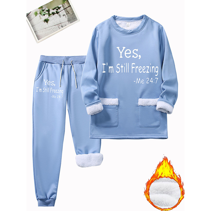 Women's Elegant Warm Fashion Two Piece Sets Tracksuit Pants Sets Long Sleeve Bishop Sleeve Crew Neck Graphic Letter Print Outdoor Vacation Daily Pink Blue Gray Spring Regular Fit