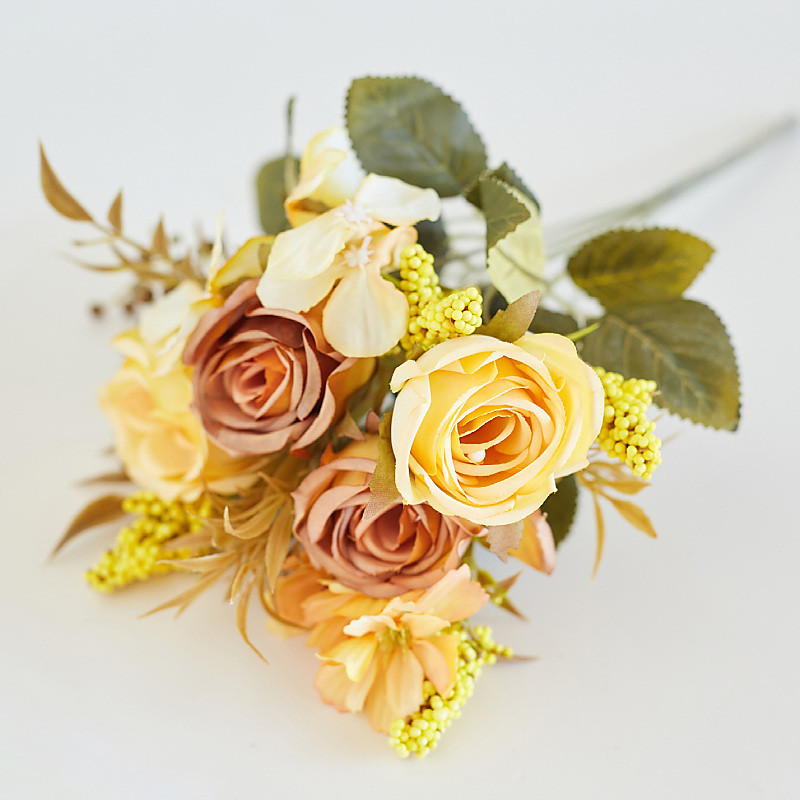 Simulated Flower 6 Forks Smoke And Rain Rose Home Decoration Artificial Flower Rose Silk Flower European Style Color Scheme Hotel Dining Table Flower Arrangement