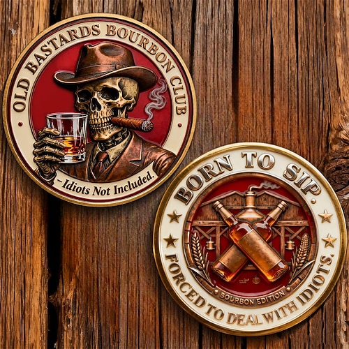 Moneta da collezione del club dei vecchi bastardi del bourbon, il bourbon risolve quasi tutto, idioti esclusi, moneta sfida, whisky d'annata moneta da collezione bourbon, moneta del club del whisky
