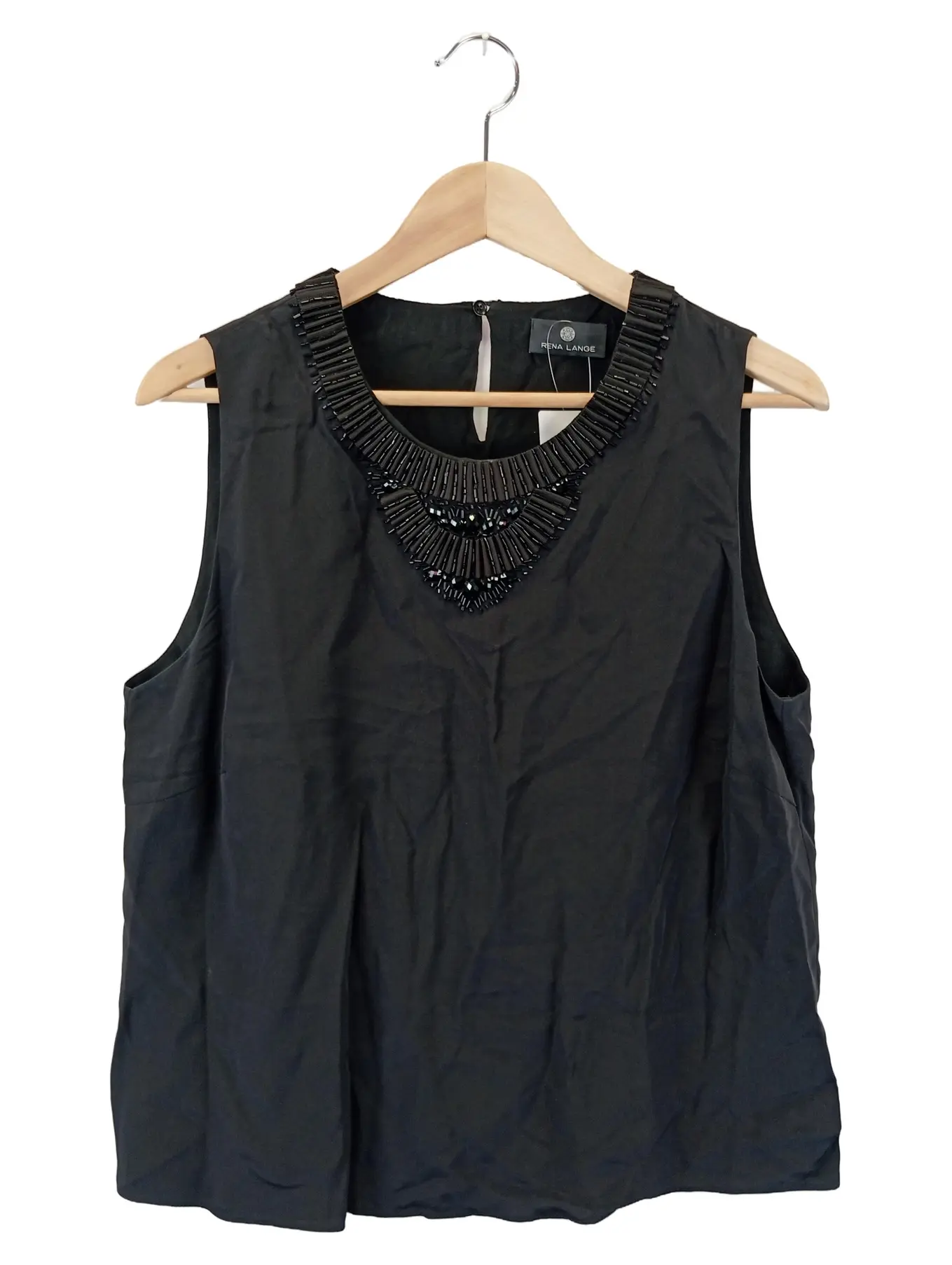 RENA LANGE Seidentop Schwarz Gr. 42 Damen Perlenbesatz Elegant