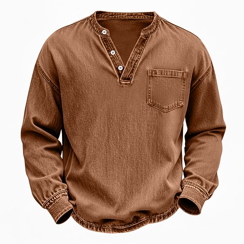 Per uomo Maglia Henley Camicia 100% cotone lavaggio acido Maglietta Manica Lunga Vintage Tinta unita Retrò Vintage Casual Stile Vintage Lavato Henley Casuale Primavera Autunno Tutte le stagioni Nero
