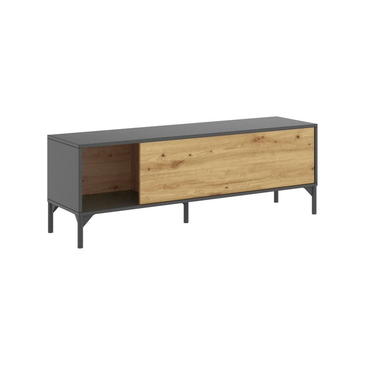 Dmora TV-Ständer Olimpo, niedriges Sideboard für Wohnzimmer, Sideboard für Wohnzimmer für Fernseher, 132 x 39 x 44 cm, Eiche Nodes und Anthrazit