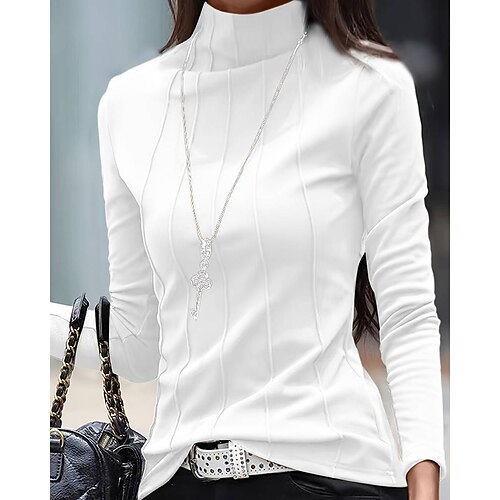 camicetta da donna quotidiano basic maglia manica lunga regular top dolcevita collo alto casual nero bianco rosa blu navy beige autunnoamp; inverno
