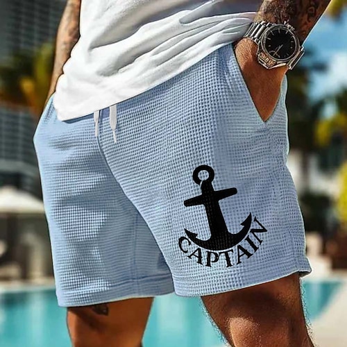 Herren Druck Anker Waffel-Shorts Sweat-Shorts Freizeitshorts Mittlere Taille Modisch lässig Urlaub Joggen Trainieren Strukturiert Elastischer Kordelzug in der Taille Shorts mit Taschen Designer