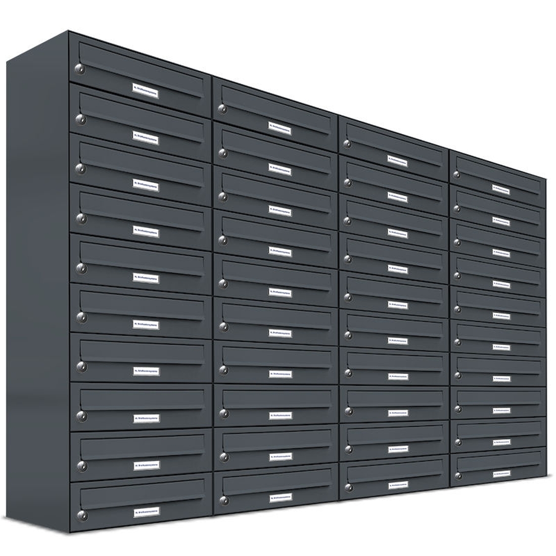 AL Briefkastensysteme 40 Fächer Premium Wand Briefkasten Anlage in RAL 7016 Anthrazit Grau, Post A4, robust, wetterfest, Artikelnummer: 132P40EA4