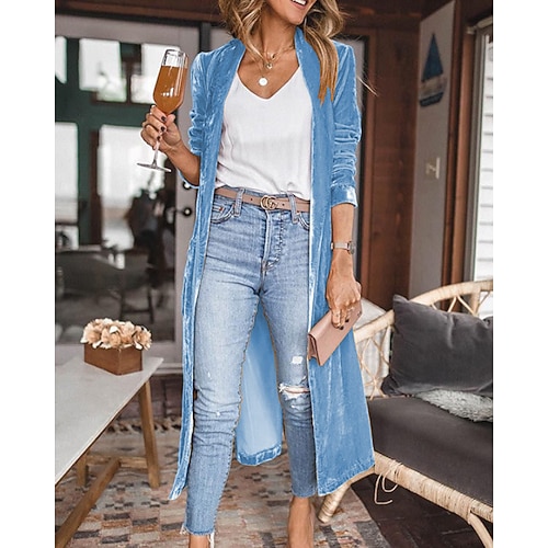 Per donna Cappotto Blazer di velluto Confortevole Aperturaanteriore Casual Semplice Vacanza Abbigliamento quotidiano Weekend Lungo Scollo a V Vestibilità comoda Manica Lunga Capispalla Nero Giallo