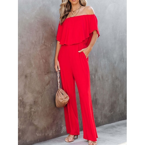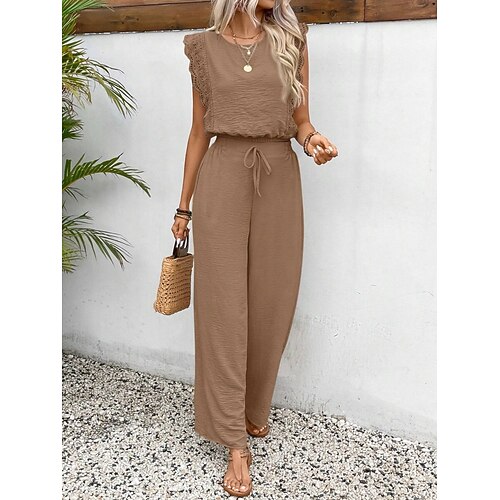 Per donna Normale Tuta Attivo Tinta unica Senza Maniche Gamba larga Senza Spalle Tasca Quotidiano Vacanza Vestibilità comoda Blu Nero Rosso Estate