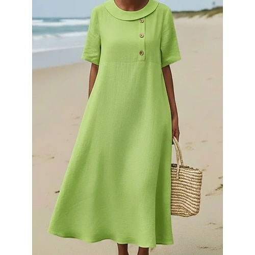 Per donna Abito Midi Finto cotone e lino Abito a Tubino Moda Moderno All'aperto Spiaggia Vacanza Vestibilità comoda Semplice Manica Corta Girocollo Nero Bianco Verde chiaro Rosa Estate Primavera