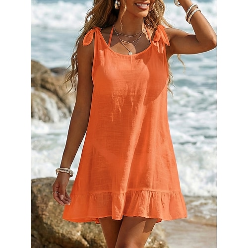 Per donna Mini abito Finto cotone e lino Abito Estivo Essenziale Spiaggia Vestibilità comoda Colore Puro Senza Maniche Girocollo Grande rosso Giuggiola rossa Lake Green Nero Estate