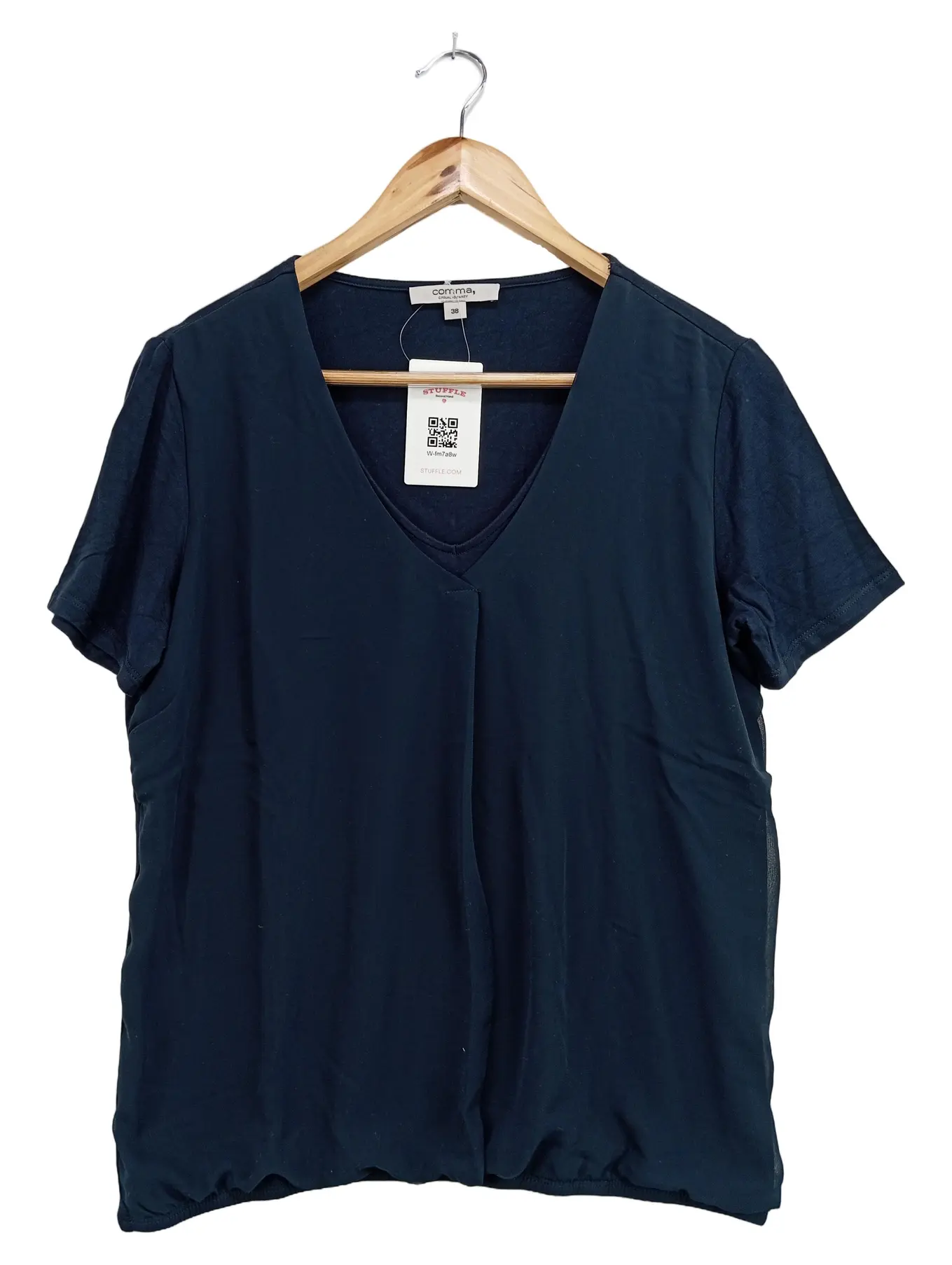 T-Shirt BOYSEN'S, Damen, Gr. 42, marine, gestreift, Jersey, Obermaterial: 50% Baumwolle, 50% Polyester, clean, gestreift, unifarben, Basic, figurumspielend, Rundhals, angeschnitten Umschlagsaum, Shirts T-Shirt, figurumspielende Passform, Rundhalsausschnit