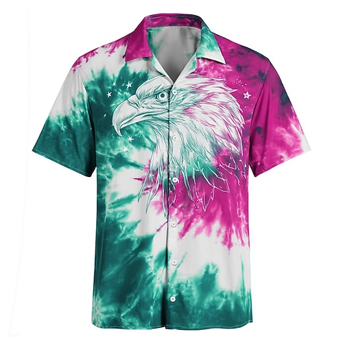 Herren Adler Tie Dye Print 250. Jahrestag der Vereinigten Staaten Hemd Knopfhemd Kurzarm Vintage-Retro Outdoor Ferien Sommer Frühling Umlegekragen 3D-Druck Hemden mit Kragen Rote Purpur Rosenrot
