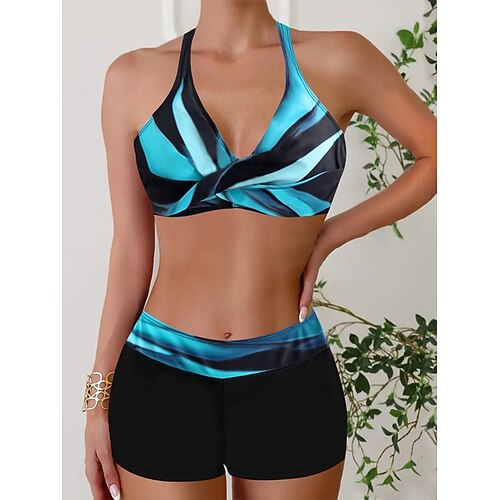 Costume da bagno bikini 2 pezzi da donna schiena scoperta abbigliamento da spiaggia per le vacanze collo halter senza maniche costumi da bagno grafiche a blocchi di colore
