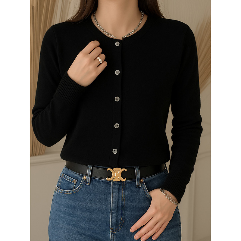 Women's Sweater Casual Solid Color Crew Neck Buttons Long Sleeve Regular Tops Knit Home Daily Holiday Blue Black Spring Fall