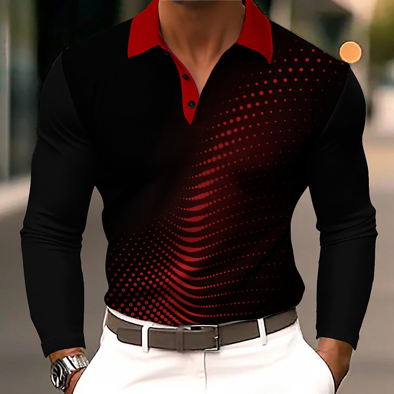 Men's Geometric Abstract Polo Long Sleeve Polo Shirts Lapel Casual Business Daily Wear 3D Print Buttons Spring Fall Blue Black Red
