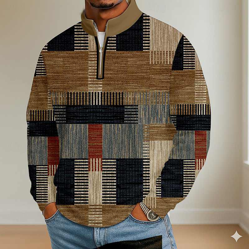 Men's Wool Lyocell Blend Business Casual Classic Long Sleeve Vintage Fashion Striped Buttons Spring Fall Dark Red Dark Green