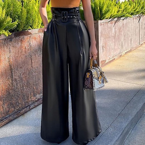 Per donna Culotte Gamba Larga Chinos Pantaloni di pelle Vacanza Vintage Streetwear Lunghezza intera Vita media Semplice Cerniera Tasca Calore Termico Confortevole Micro-elastico All'aperto Vacanza