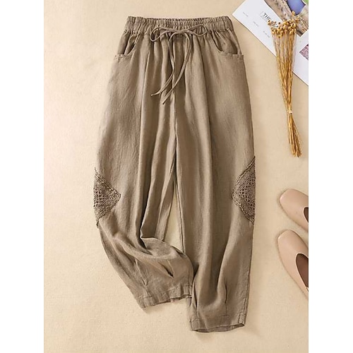 Per donna Gamba larga Pantaloni in cotone e lino Pantaloni Moda Streetwear Comfort Lunghezza intera Misura del girovita medio Semplice Tasca Elastico in vita Comodo Confortevole Streetwear