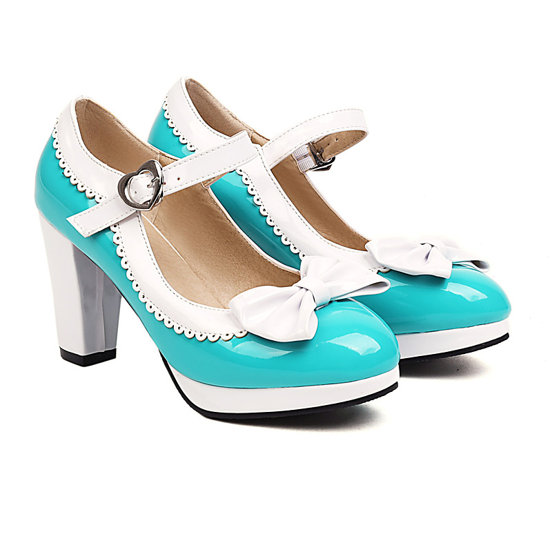Women's Vintage Lolita Mary Jane Heels with Bow and Heart Buckle – Retro Platform Pumps for Cosplay and Parties