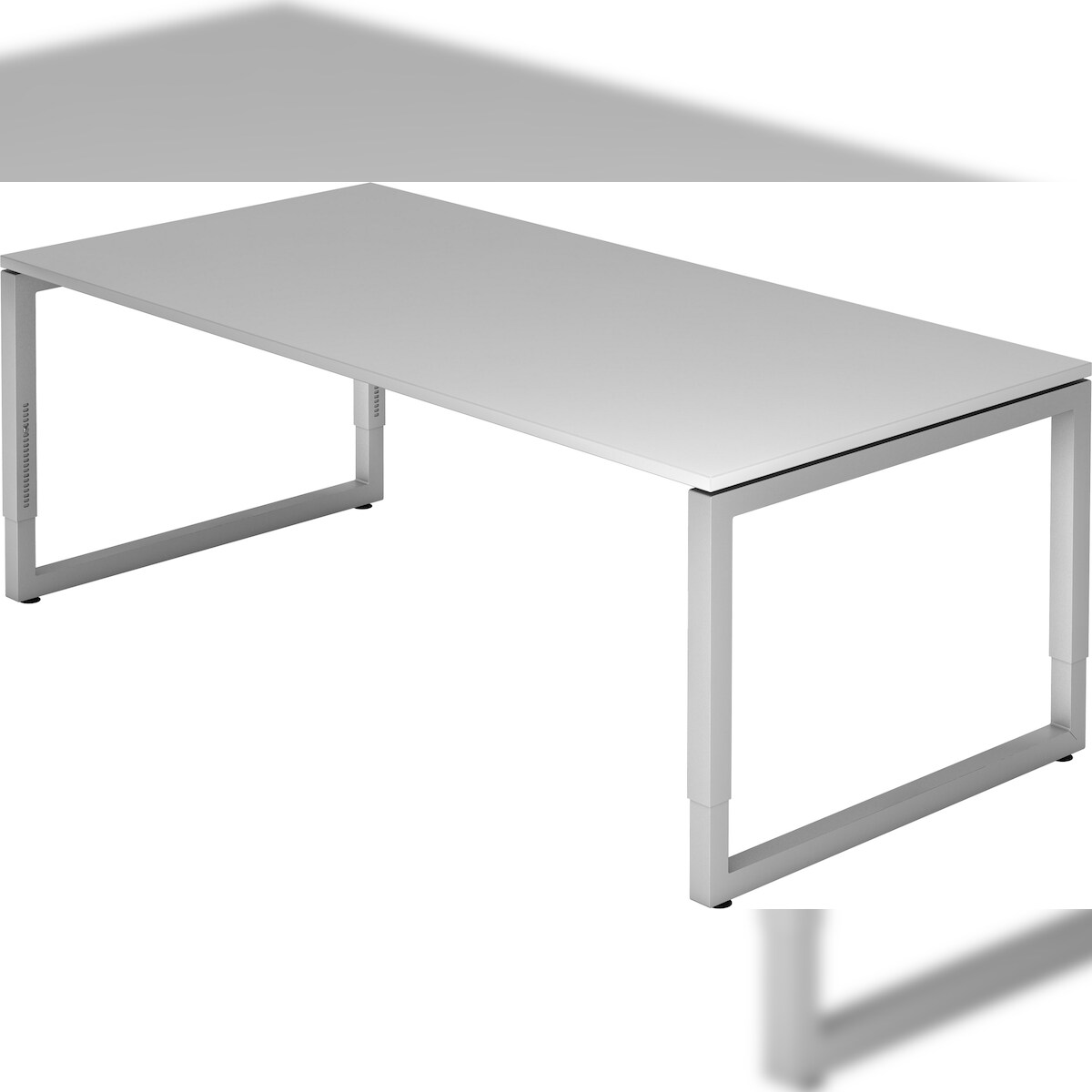 bümö Schreibtisch "H-Serie" höhenverstellbar, Tischplatte 140 x 67,2 cm in Asteiche, Gestell in silber