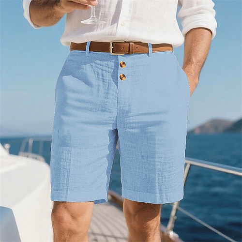 Per uomo Shorts Shorts di Lino Pantaloncini Estivi Shorts da Spiaggia Tasca Semplice Comodità Traspirante Lunghezza al ginocchio Vacanza Ferie Spiaggia Hawaiano Boho Nero Bianco