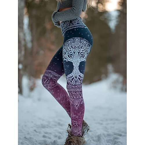 Leggings Boho Viking da donna Vintage Stile Etnico Full Length Alta Vita Grafica Astratta Stampa 3D Asciugatura Rapida Traspirabilità Morbidi Elasticizzati Formali Vacanza Rosa Estate Primavera