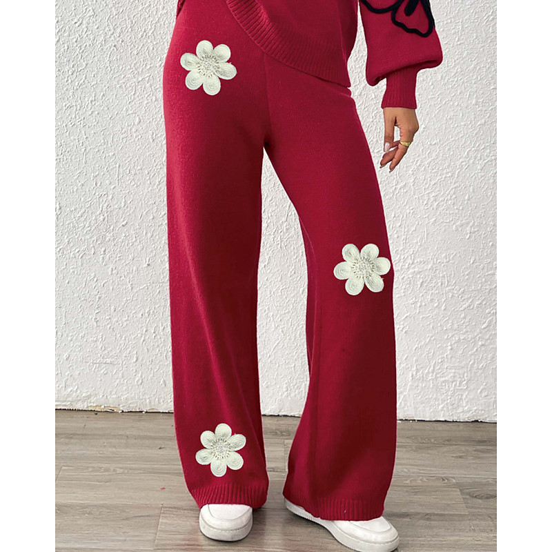 Women's Wide Leg Slacks Streetwear Casual Full Length Natural Flower Elastic Waist Printing Soft Street Holiday Weekend Wine Black Coffee Winter Regular Fit