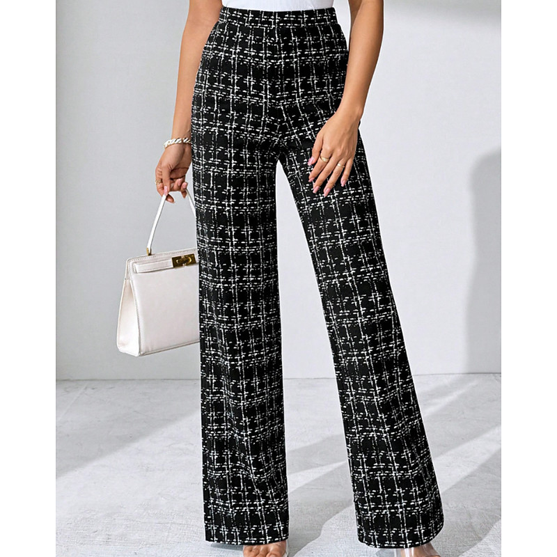 Women's Wide Leg Slacks Streetwear Casual Full Length Natural Plaid Elastic Waist Comfy Street Holiday Daily Wear Black White Green Dark Blue Fall Regular Fit
